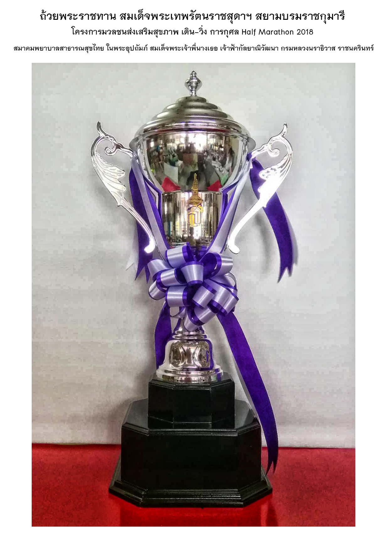 1. รางวัลถ้วยพระราชทาน สมเด็จพระเทพรัตนราชสุดาฯ สยามบรมราชกุมารี สำหรับผู้เข้าแข่งขัน ระยะทาง 21 กิโลเมตร อันดับ 1 ประเภทชายและหญิง ประเภทละ 1 รางวัล รวม 2 รางวัล